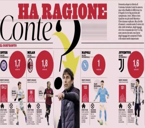 不過在本輪聯(lián)賽的賽后發(fā)布會上,當記者問到為什么那不勒斯無法真正掌控比賽時,孔蒂回答道:原因有很多。這是一條剛剛開始道路,從整體結構層面來說我們還沒準備好。以我看來,尤文、國米和AC米蘭在結構、二隊配置、薪資總額以及資產價值方面,都與其他球隊不同。每當不是這三支球隊中的一支奪冠,那就意味著完成了一項非凡的成就。我們試圖在球場上彌補這種差距,但必須承認,這些球隊本身就處在不同的層級。