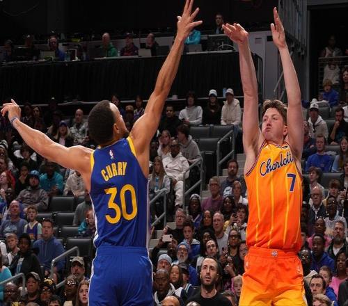 這場比賽,庫里命中了5+三分,這么一來他職業(yè)生涯的單場命中5+三分的場次來到了400場,歷史第一。也難怪,賽后克尼佩爾在接受采訪時直言:“我們竭盡全力了,但真的攔不住啊!”當(dāng)然,克尼佩爾今天的發(fā)揮仍然十分出色。全場11投7中得到20分5籃板8助攻,三分7投4中十分高效。而且,今天這場賽后,克尼佩爾單場進(jìn)入‘180俱樂部’,并且得到20+分?jǐn)?shù)的場次,也超過了庫里。可以這么說,雖然今天這場比賽輸了,但克尼佩爾絕對是未來可期。當(dāng)然了,對于球迷們來說,最重要的還是克尼佩爾何時能夠離開黃蜂隊?