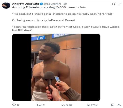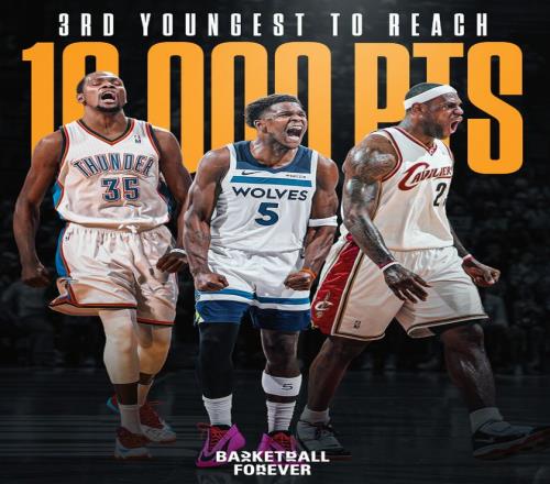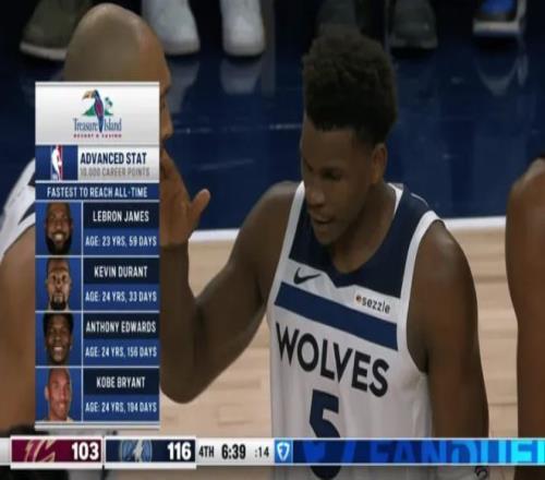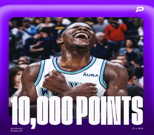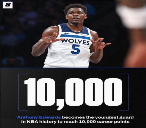 這場比賽愛德華茲一戰(zhàn)創(chuàng)造多項紀錄:1.他成為森林狼隊史最快的10000分先生;
