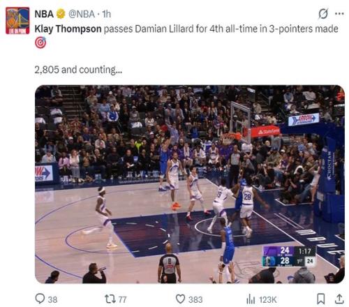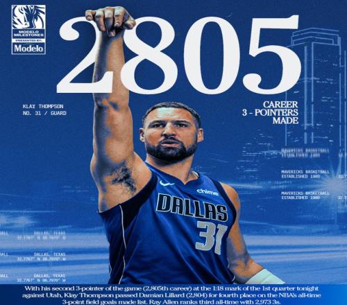 北京時(shí)間1月16日,獨(dú)行俠替補(bǔ)克萊-湯普森完成了職業(yè)生涯2805+三分超越達(dá)米安-利拉德升至歷史第四位,在他身前只剩下庫(kù)里、哈登、雷阿倫,而且這場(chǎng)比賽獨(dú)行俠144-123狂勝爵士,克萊的里程碑之夜非常耀眼。