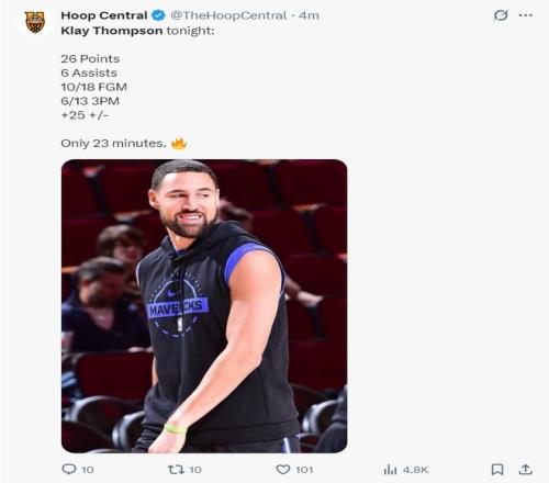 這場(chǎng)比賽克萊僅僅出戰(zhàn)23分鐘,18中10,三分13中6,拿到26分6助攻1籃板1搶斷1蓋帽,命中率55.6%,三分命中率46.7%,真實(shí)命中率72.2%。正負(fù)值+25,這場(chǎng)比賽感覺(jué)讓我們看到了那個(gè)單節(jié)37分的他,35歲的老克萊算老夫聊發(fā)少年狂了。